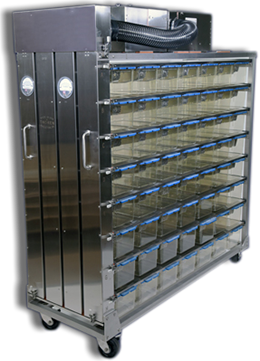 This system is designed to allow flexibility in size, type of units and placement within your facility. Mobile Cage Systems are constructed for ease of mobility. These racks are equipped with stainless steel casters, grease fittings and optional locking wheels.